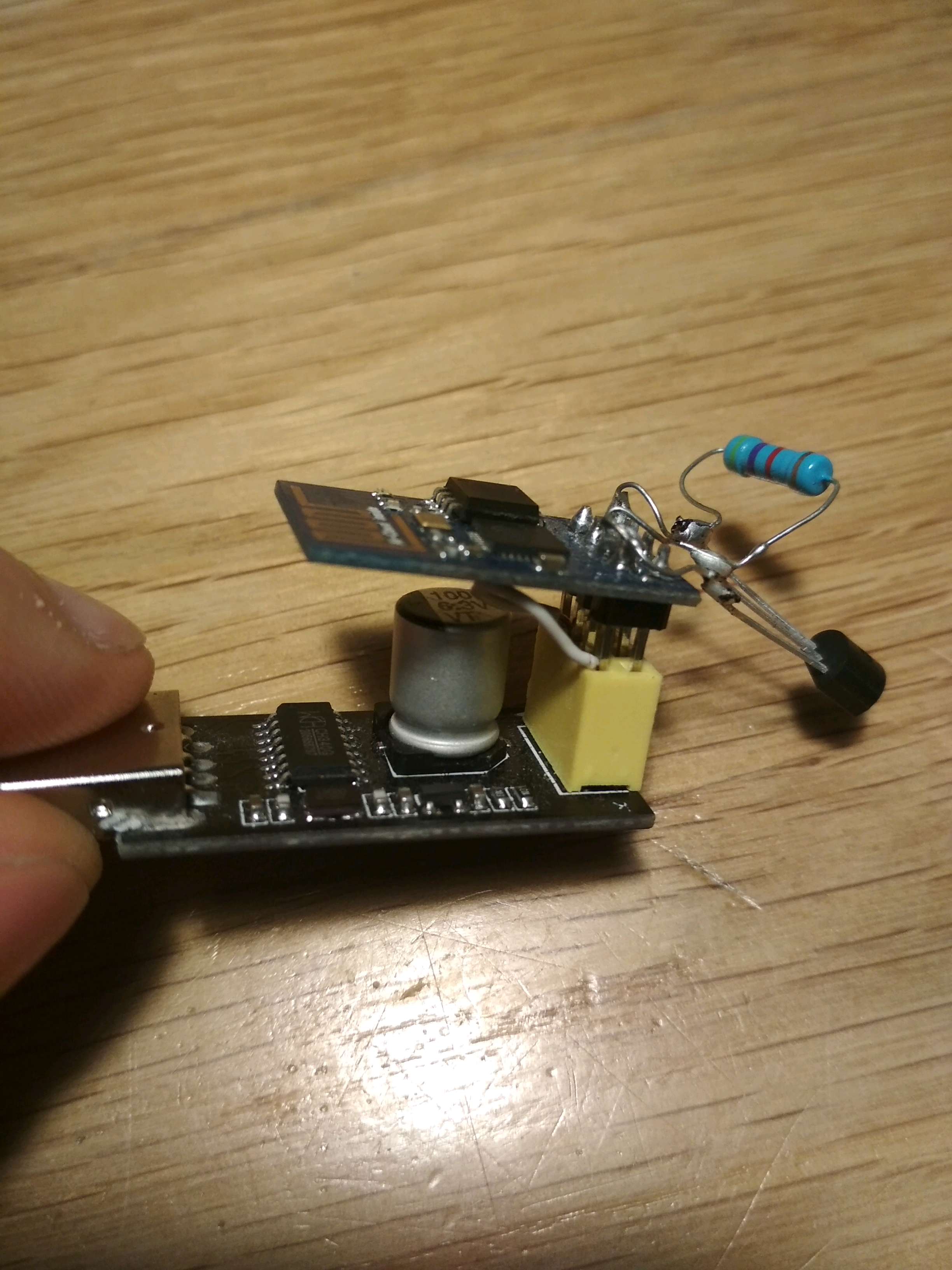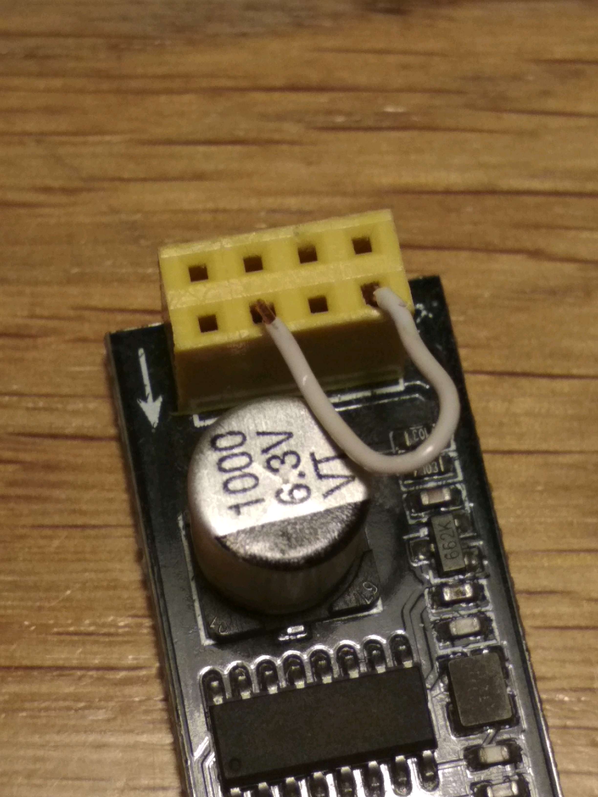 To flash I short GPIO0 and GND like below, before puting ESP8266 to the board.